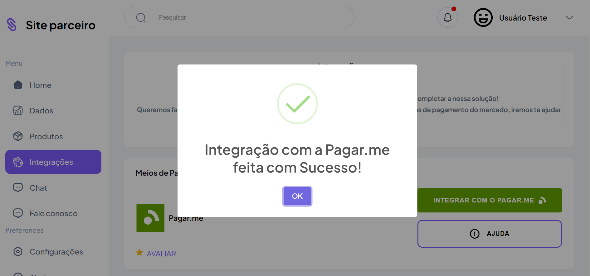 - O fluxo se inicia quando o usuário lojista, após realizar o login na plataforma, clica no botão Integrar com o Pagar.me geralmente implementado em telas como “Configurações” ou “Integrações”.